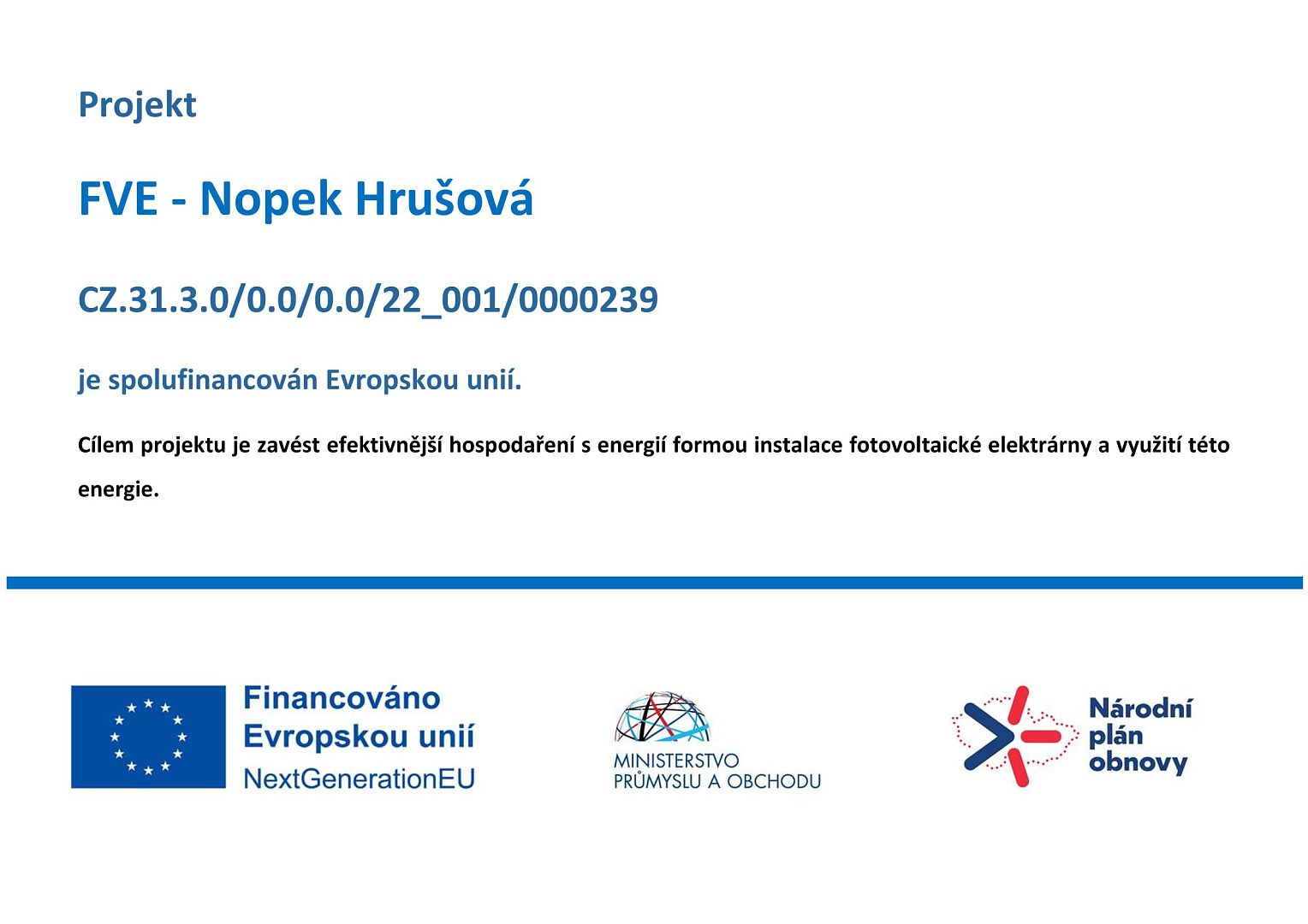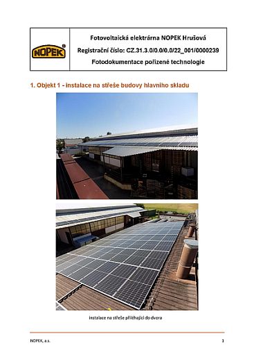 Název projektu: Fotovoltaická elektrárna – pekárna NOPEK Hrušová